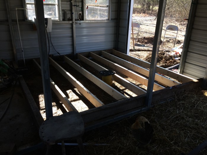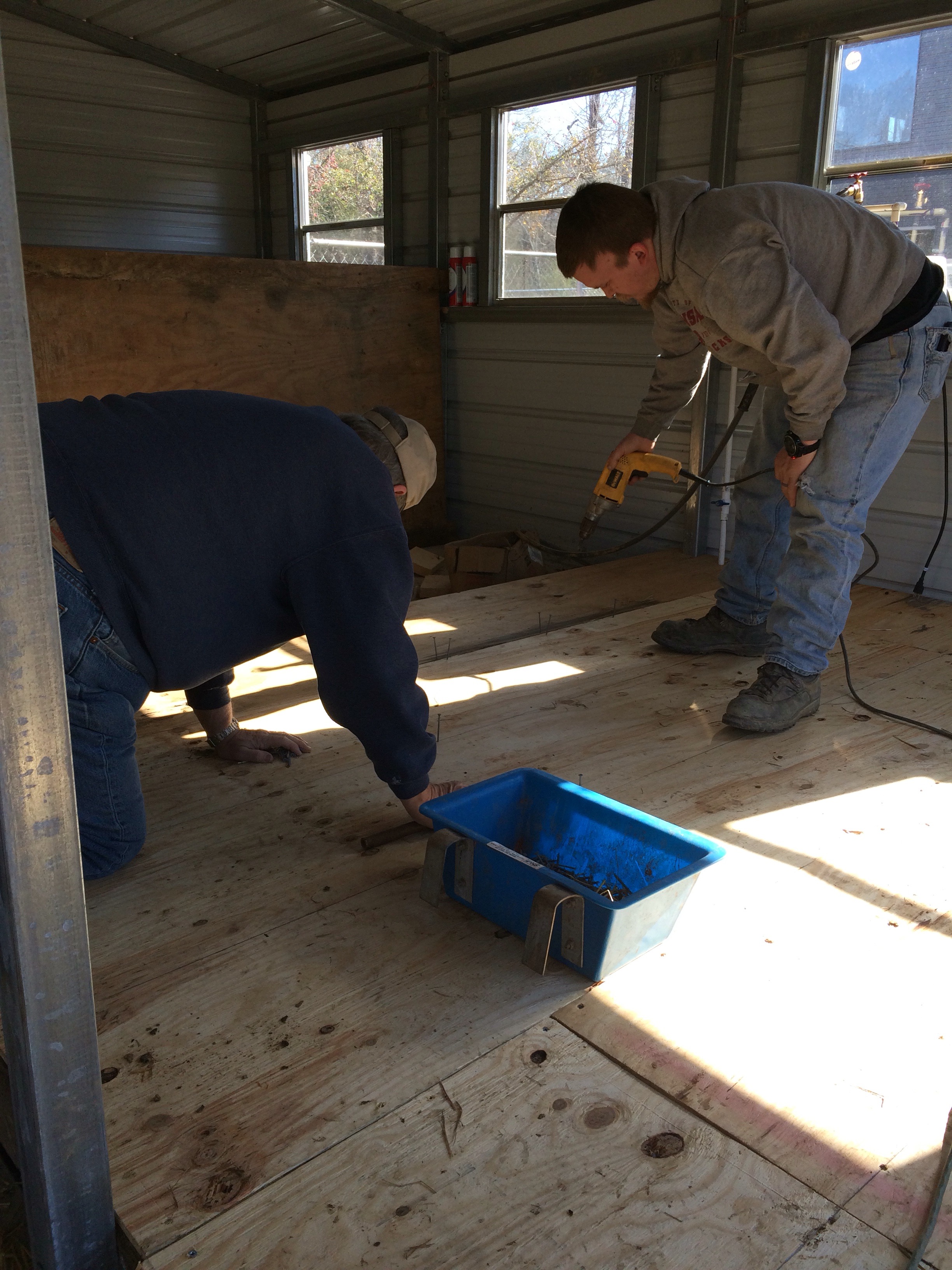 And the base for the floor is laid! Tomorrow is plywood, and then we start on walls. We wanna give a shout out to a GRF friend and customer Deb, who helped us out with a generous Home Depot gift of all the new wood for the floor. She rocks!