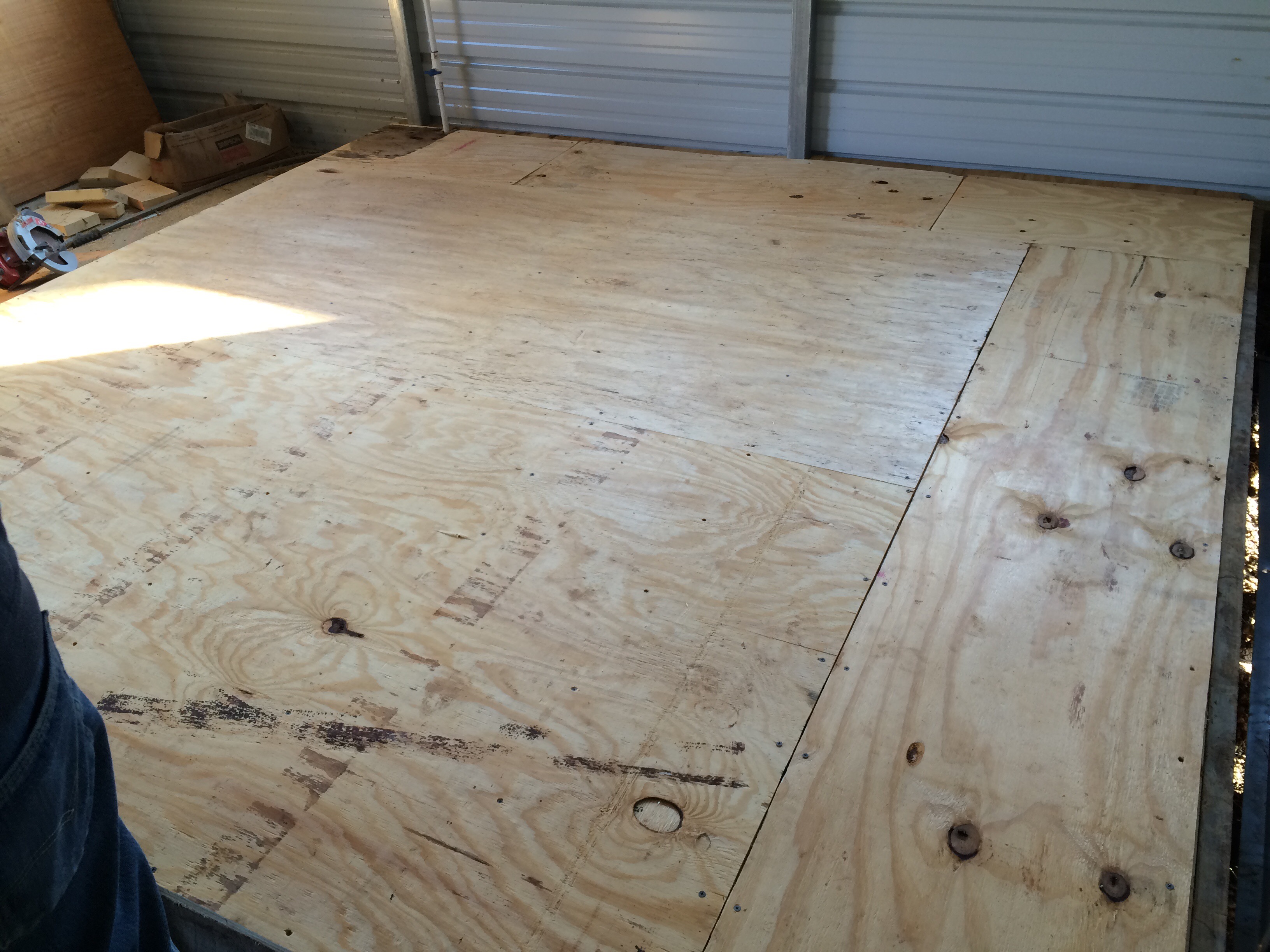 Laying down that second layer of plywood because we overbuild at Goatroper