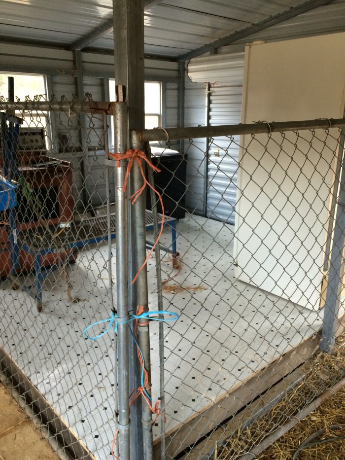 The front is simply the cattle panel as a structural support for the chain link that was their old feeder stretched across it.