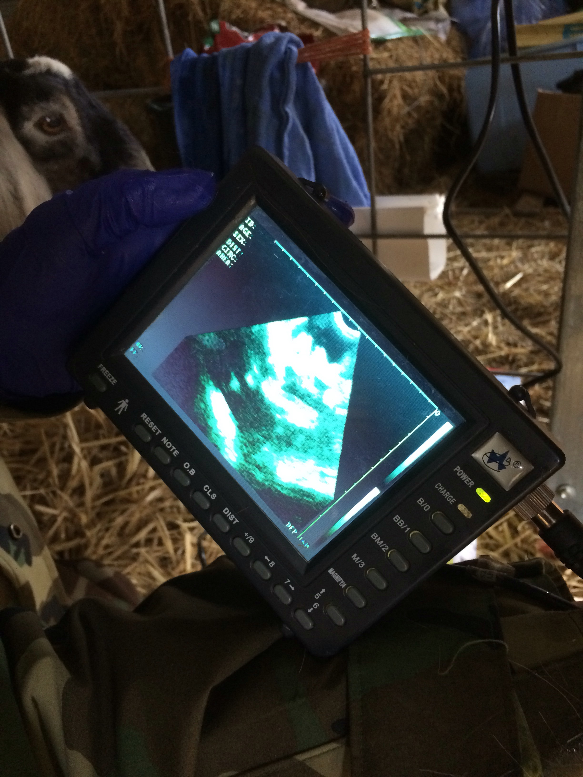 Had our ultrasounds done today (with Dora’s complete supervision as you can see) and everyone is pregnant, and while the Nubians aren’t far enough along to number babies, at least 17 will be hitting the ground! Bring on March!