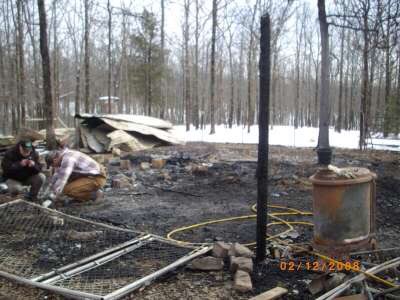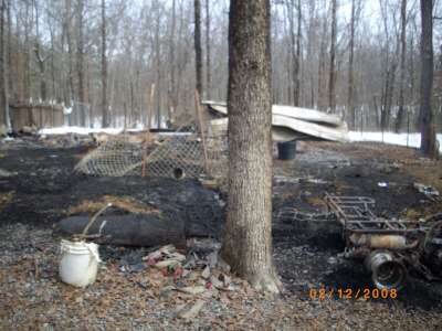 When the barn burned to the ground, we lost 10 of our 11 goats, including five 1-month old kids and the first kid born after Goatroper became official. We had to bury their charred bodies, which were all curled up where they slept like they were simply asleep under a grey blanket.